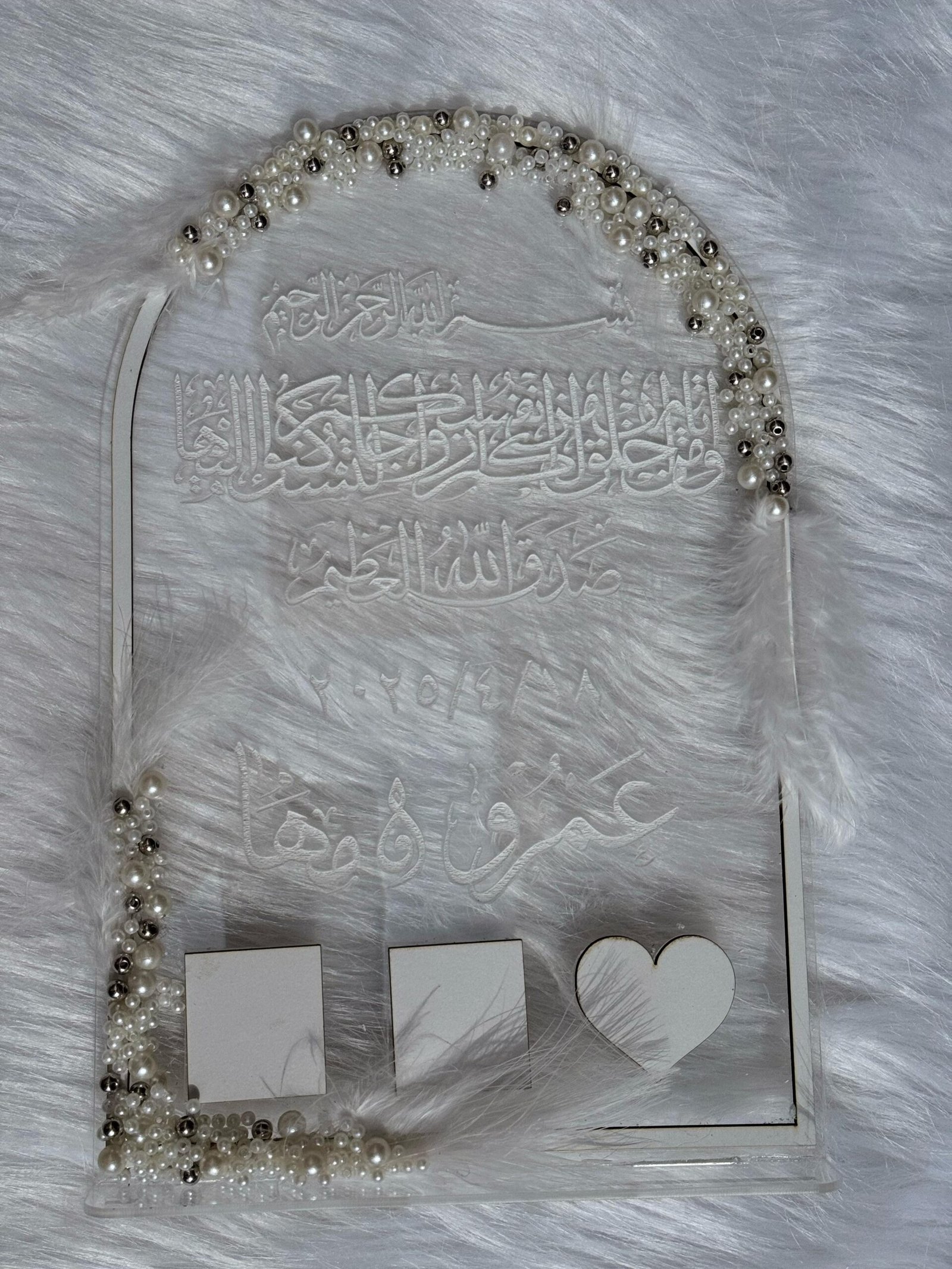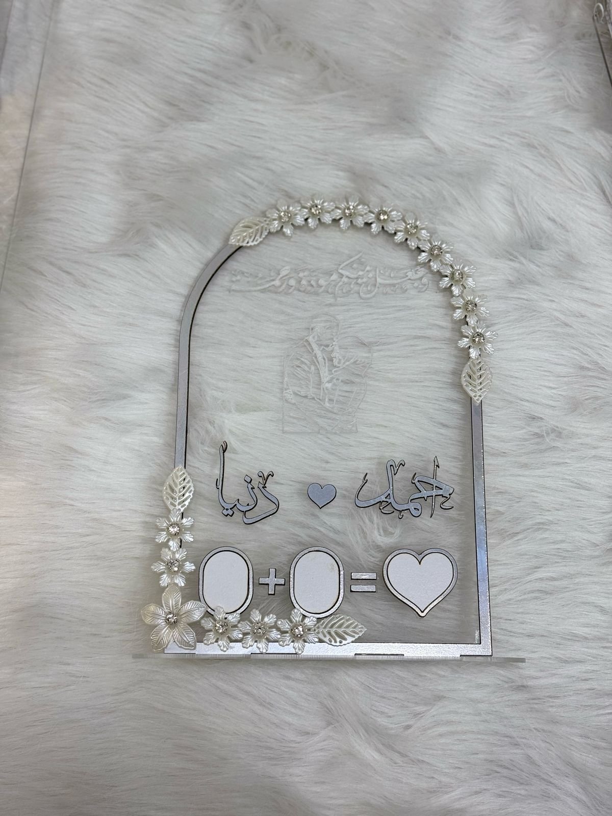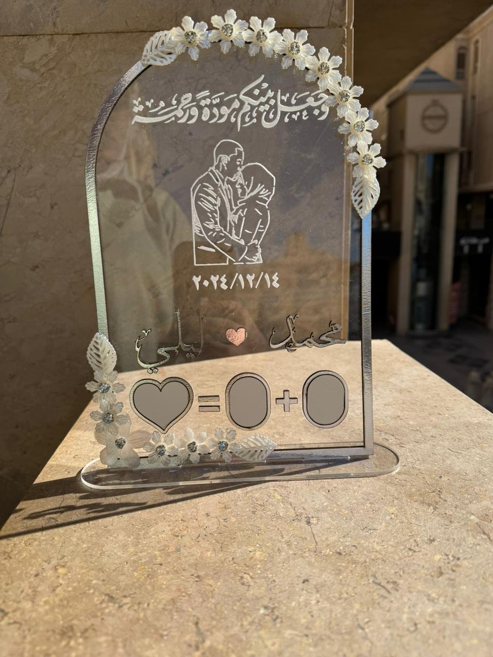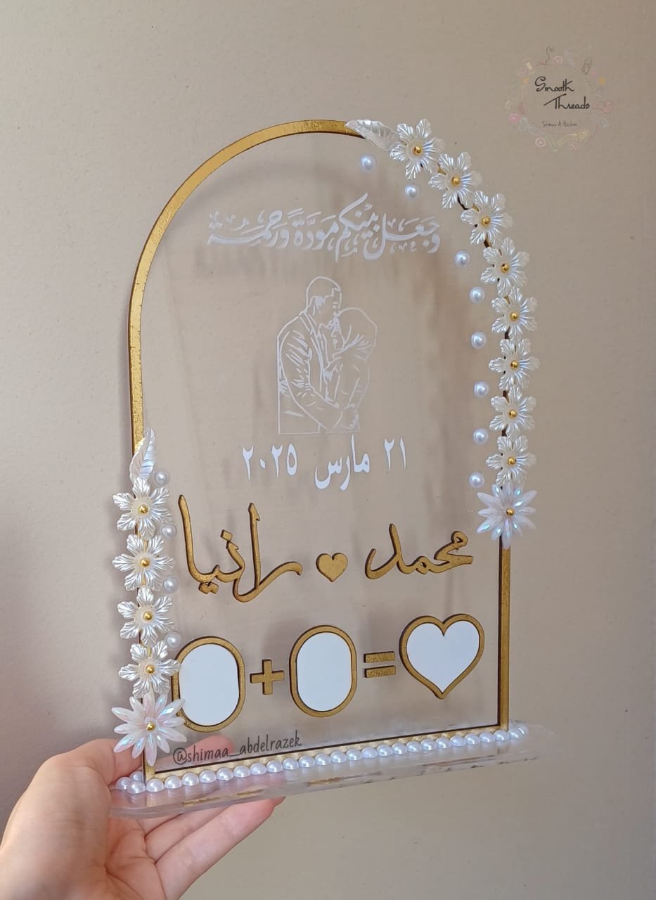 الطبقه التانيه عباره جزء حفر البيانات على الاكريلك و جزء فريم خشب سمك 2.5 ملم متاح منه الابيض والجولد والسيلفر